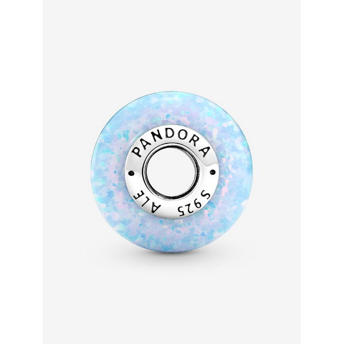 Deze prachtige, in het lab gemaakte opaal-bedel is geïnspireerd op glinsterende blauwe golven op de oceaan die de zomerzon reflecteren. Het is de perfecte aanvulling op je zomerlook. Hij heeft een sterling zilver kern met het Pandora-logo aan één kant, omringd door een in het laboratorium gemaakte opaal die glinstert met zachte kleuren en glinsterende strepen. Elke steen is uniek, net als jij.